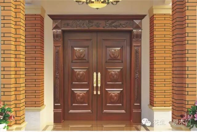 花生原木门出厂的每扇门的门角上都有激光雕刻的logo防伪标示。假冒产品无此商标或者是粘贴式商标。